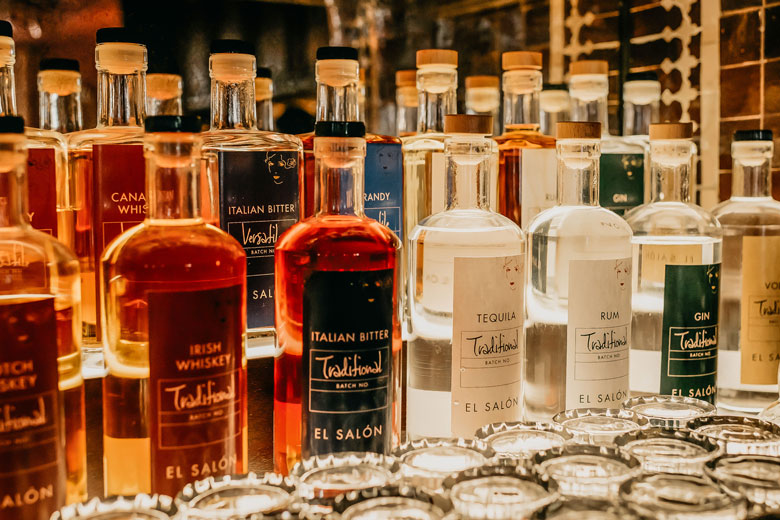 Miami’s El Salón has removed liquor branding from its bar in favor of a concise selection of house-blended spirits.